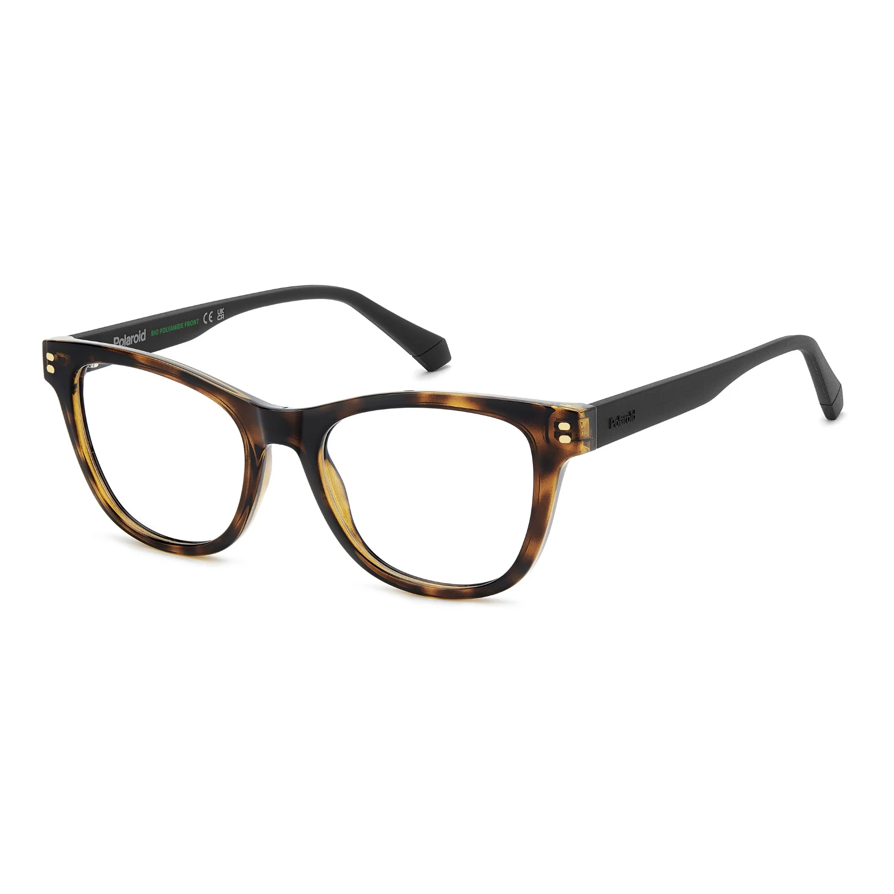 Young trend-setters love stylish and sustainable accessories, just like these Polaroid optical glasses for girls ages 11 to 15. The temple is noteworthy: in flexible rubber, it offers comfort and stability. The details are equally worthy of attention, with frontal rivets, a raised logo and a colour palette that has something for everyone. Another reason to choose these glasses? They're made from green materials.